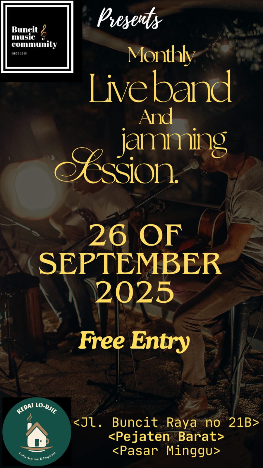 Buncit Music Community kembali menghadirkan Monthly Live Band & Jamming Session!